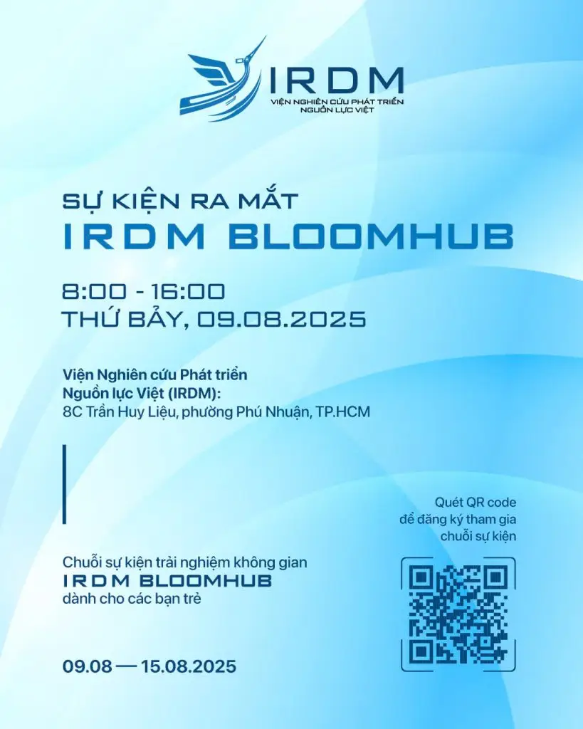 Vào ngày 09/08/2025, Viện Nghiên cứu Phát triển Nguồn lực Việt (IRDM) sẽ chính thức ra mắt không gian làm việc và kết nối cộng đồng mới: IRDM BLOOMHUB. Sau hơn 5 năm (2020 – nay) bền bỉ đồng hành cùng người trẻ trên hành trình phát triển nghề nghiệp và nuôi dưỡng nội lực, […]